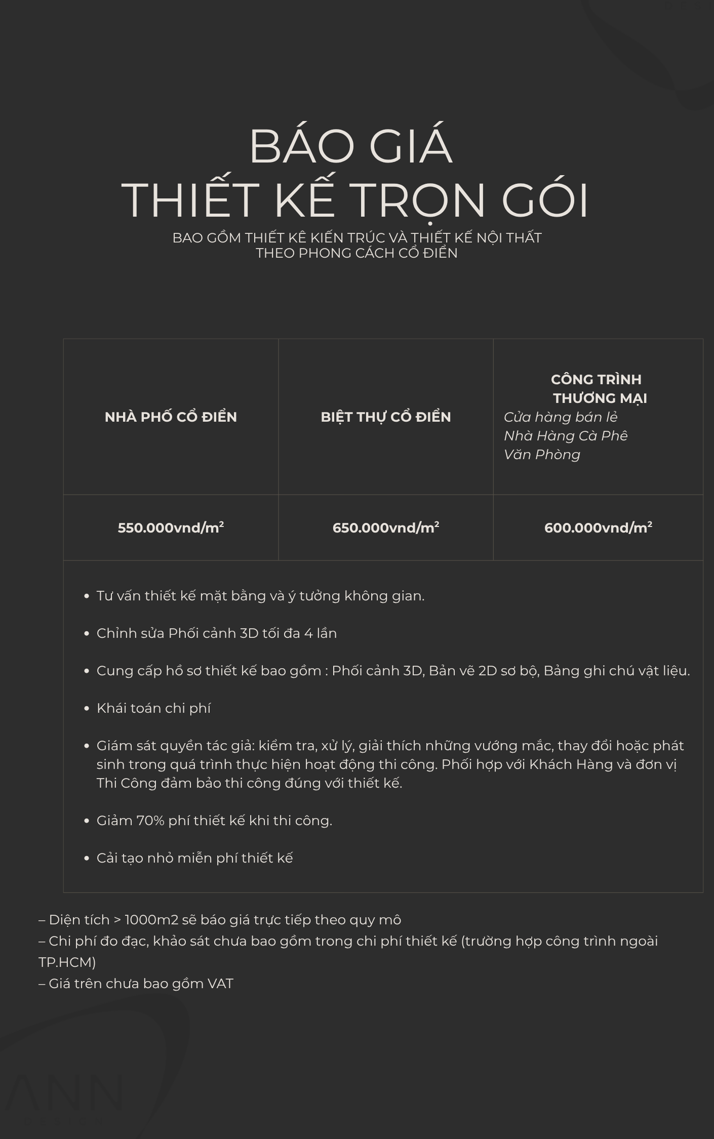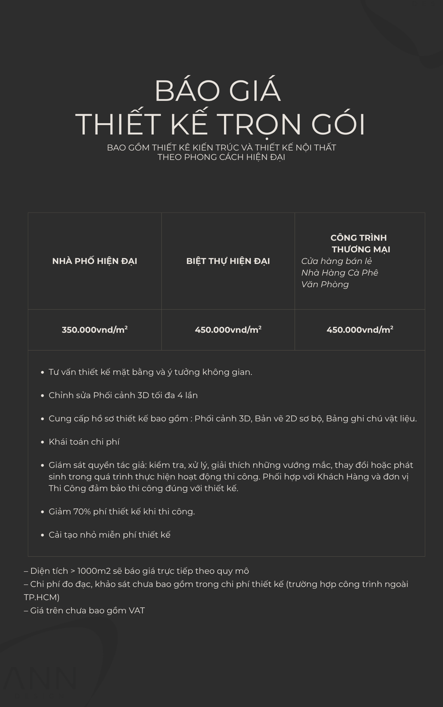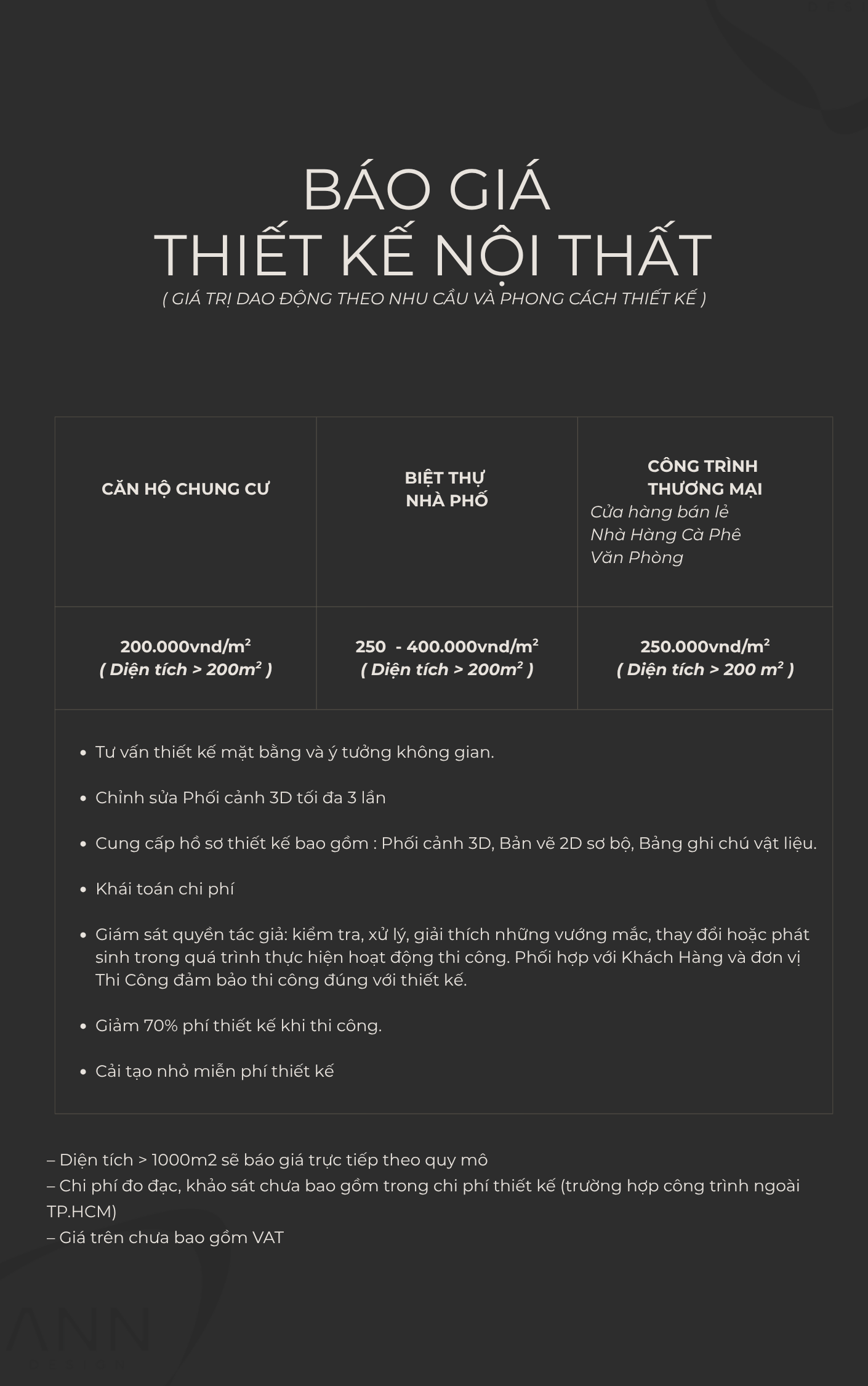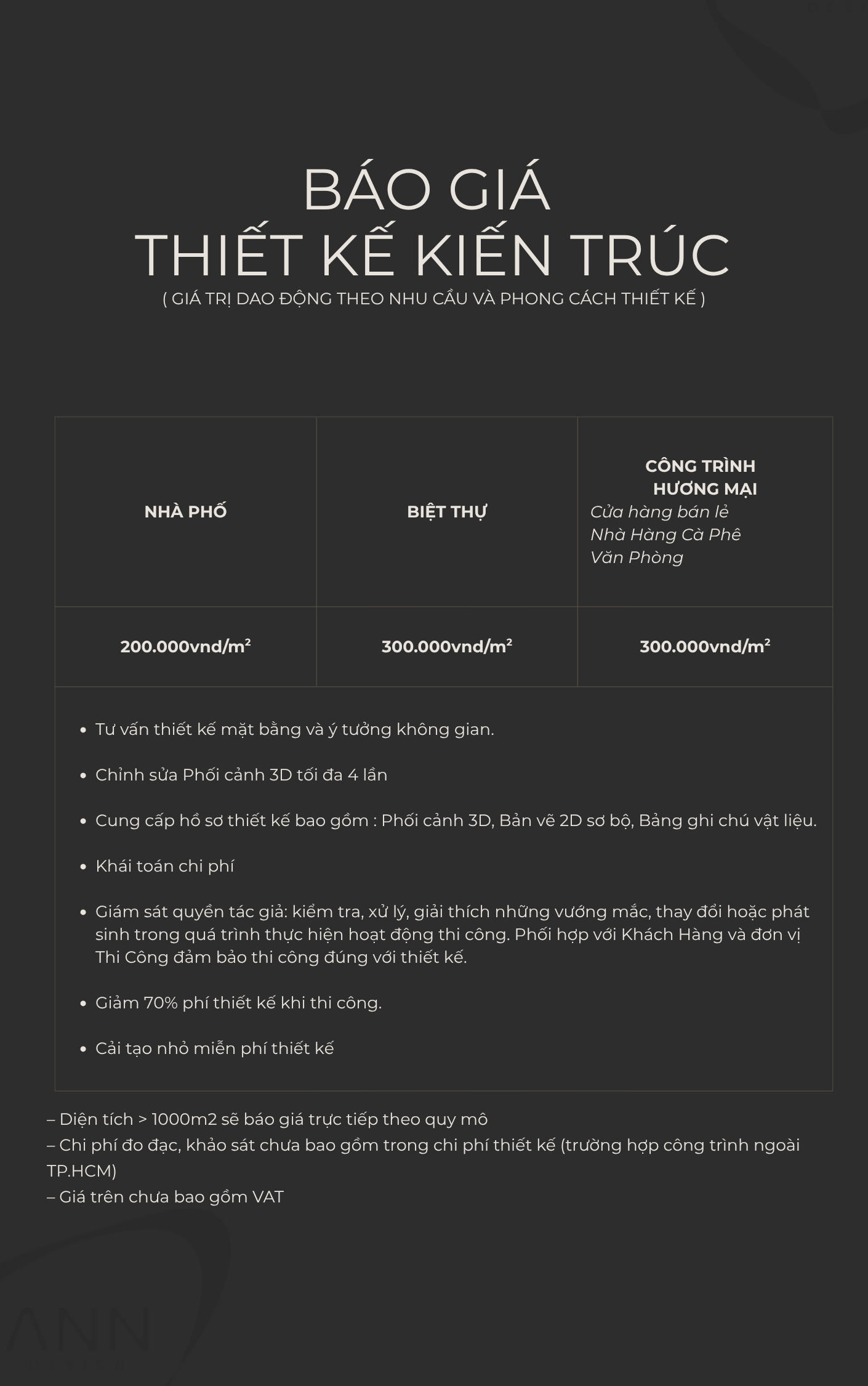 BẢNG GIÁ THIẾT KẾ